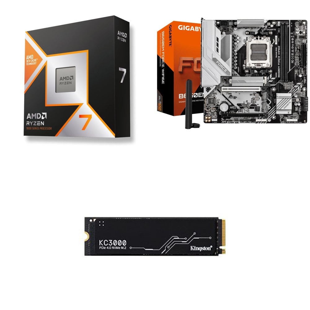 ☆裝機配★ AMD R7 9850X3D+技嘉 B650EM FORCE WIFI6E MATX主機板+金士頓 KC3000 2TB PCIe 4.0 NVMe M.2 SSD