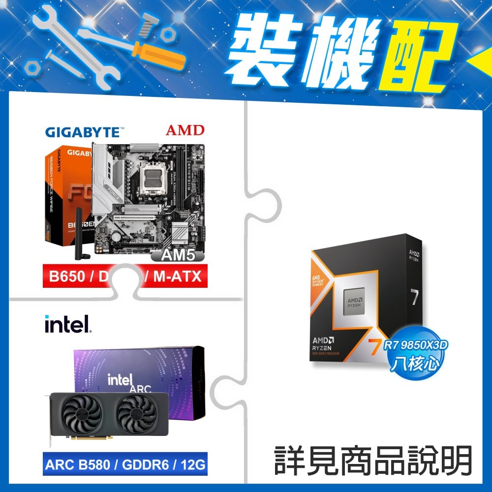 ☆裝機配★ AMD R7 9850X3D+技嘉 B650EM FORCE WIFI6E MATX主機板+Intel Arc B580 12G 20 Core 顯示卡