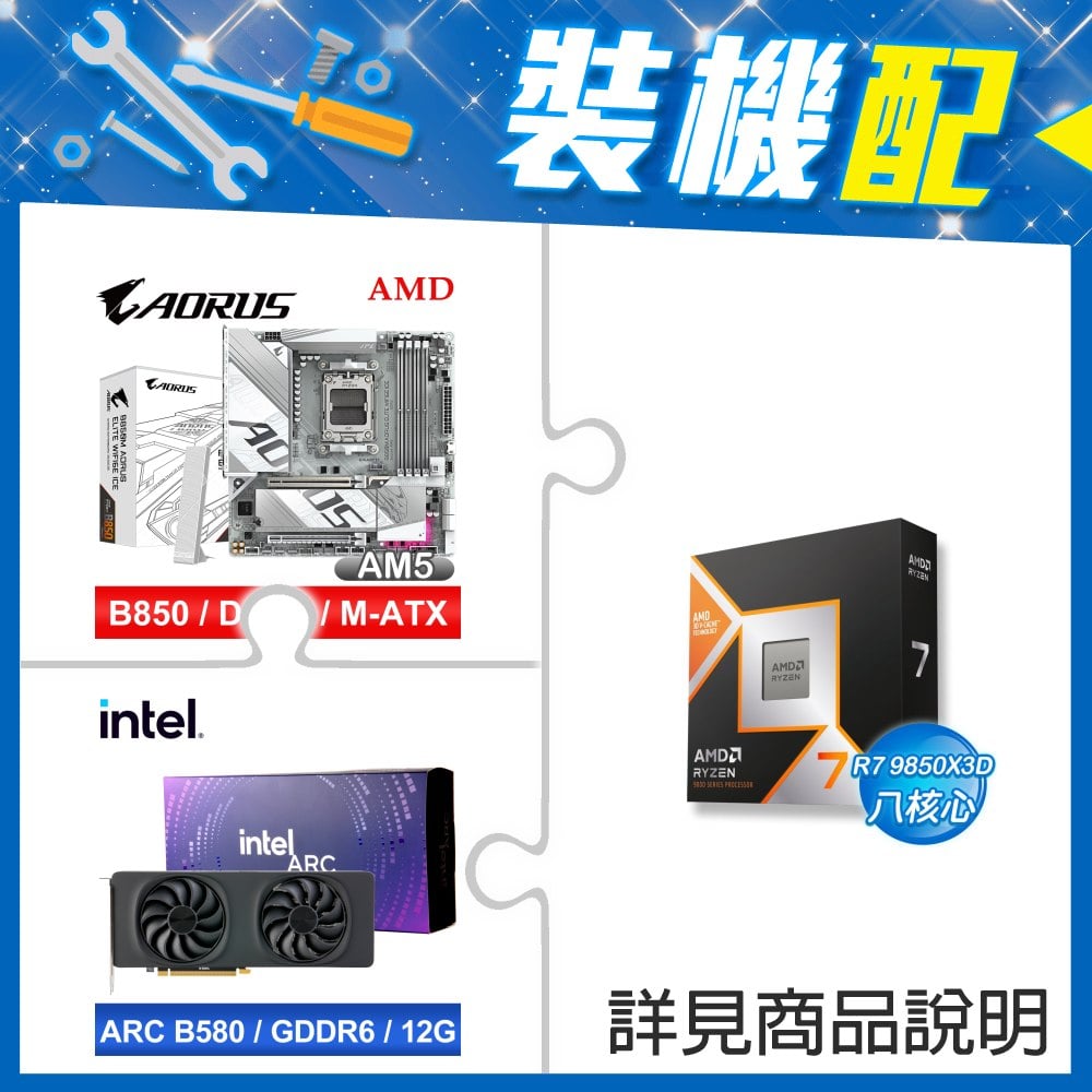 ☆裝機配★ AMD R7 9850X3D+技嘉 B850M AORUS ELITE WIFI6E ICE M-ATX主機板+Intel Arc B580 12G 20 Core 顯示卡