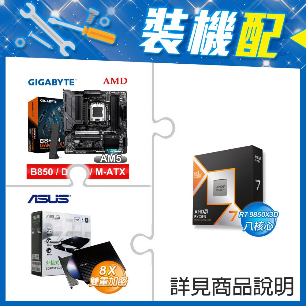 ☆裝機配★ AMD R7 9850X3D+技嘉 B850M GAMING X WIFI6E MATX主機板+華碩 SDRW-08D2S-U 外接式燒錄機《黑》