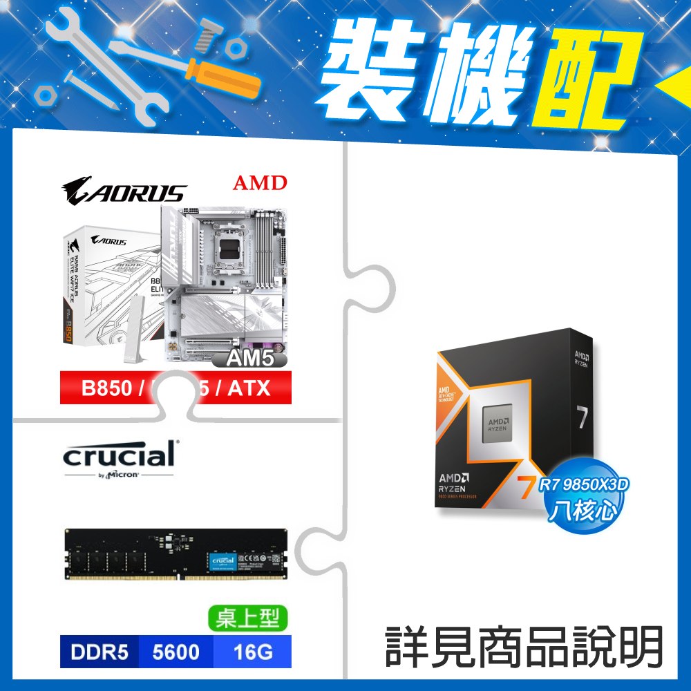 ☆裝機配★ AMD R7 9850X3D+技嘉 B850 AORUS ELITE WIFI7 ATX主機板+美光 DDR5-5600 16G 記憶體