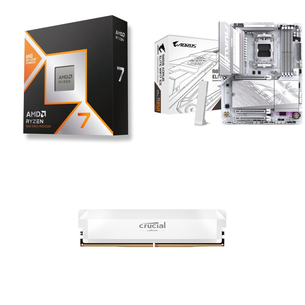 ☆裝機配★ AMD R7 9850X3D+技嘉 B850 AORUS ELITE WIFI7 ICE ATX主機板+美光 Crucial PRO DDR5-6000 16G 記憶體《白》