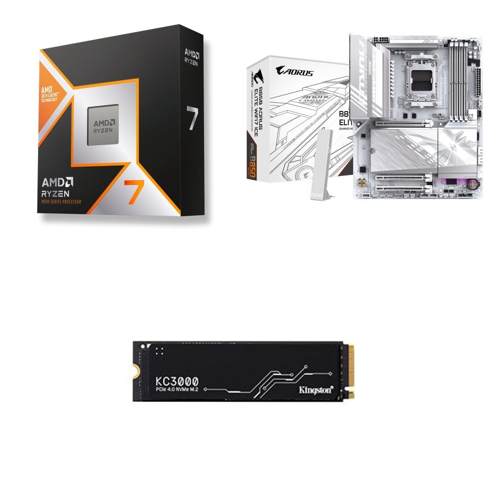 ☆裝機配★ AMD R7 9850X3D+技嘉 B850 AORUS ELITE WIFI7 ICE ATX主機板+金士頓 KC3000 2TB PCIe 4.0 NVMe M.2 SSD