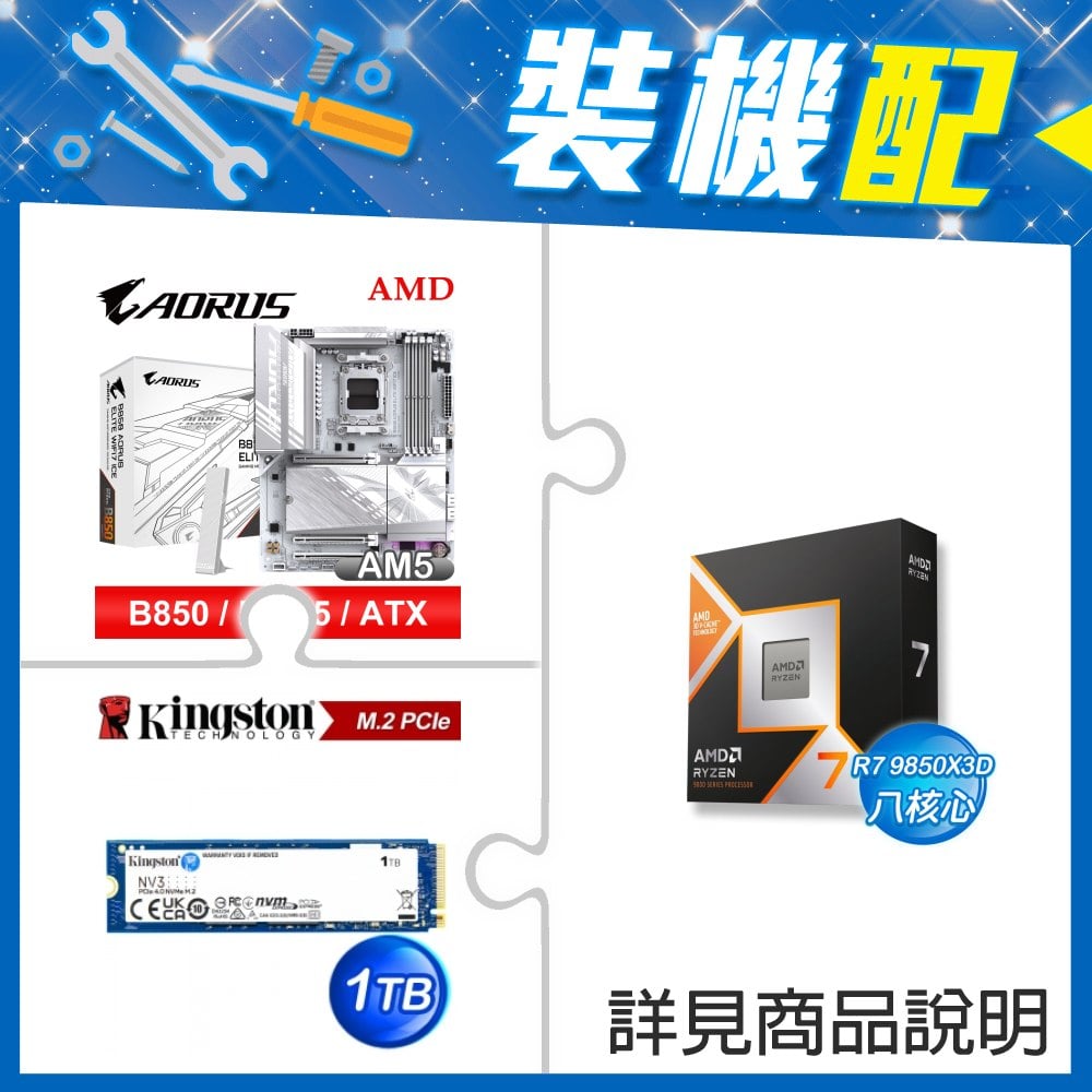 ☆裝機配★ AMD R7 9850X3D+技嘉 B850 AORUS ELITE WIFI7 ATX主機板+金士頓 NV3 1TB M.2 PCIe SSD