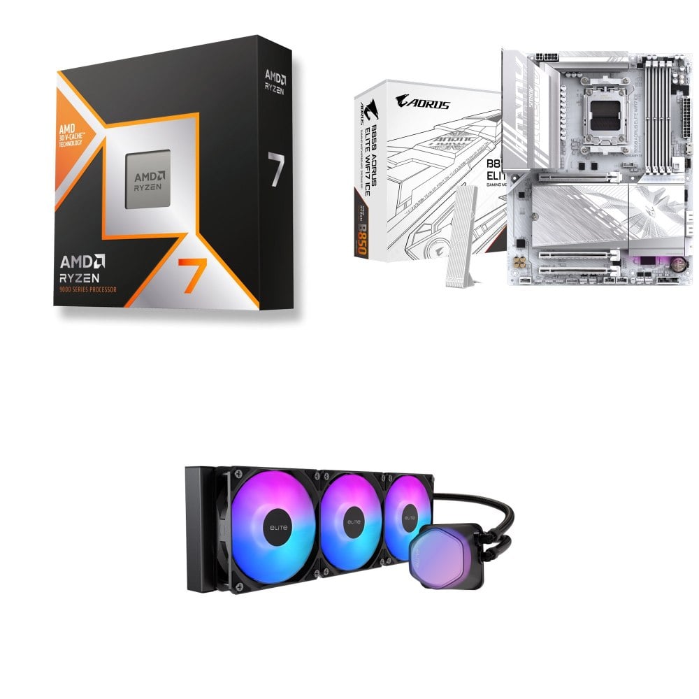 ☆裝機配★ AMD R7 9850X3D+技嘉 B850 AORUS ELITE WIFI7 ICE ATX主機板+酷碼 EliteLiquid 360 ARGB 水冷散熱器