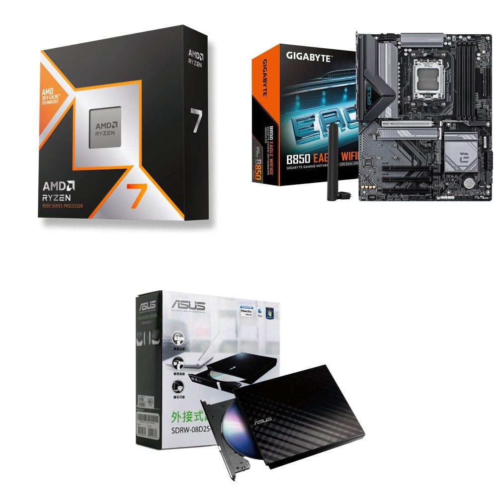☆裝機配★ AMD R7 9850X3D+技嘉 B850 EAGLE WIFI6E ATX主機板+華碩 SDRW-08D2S-U 外接式燒錄機《黑》
