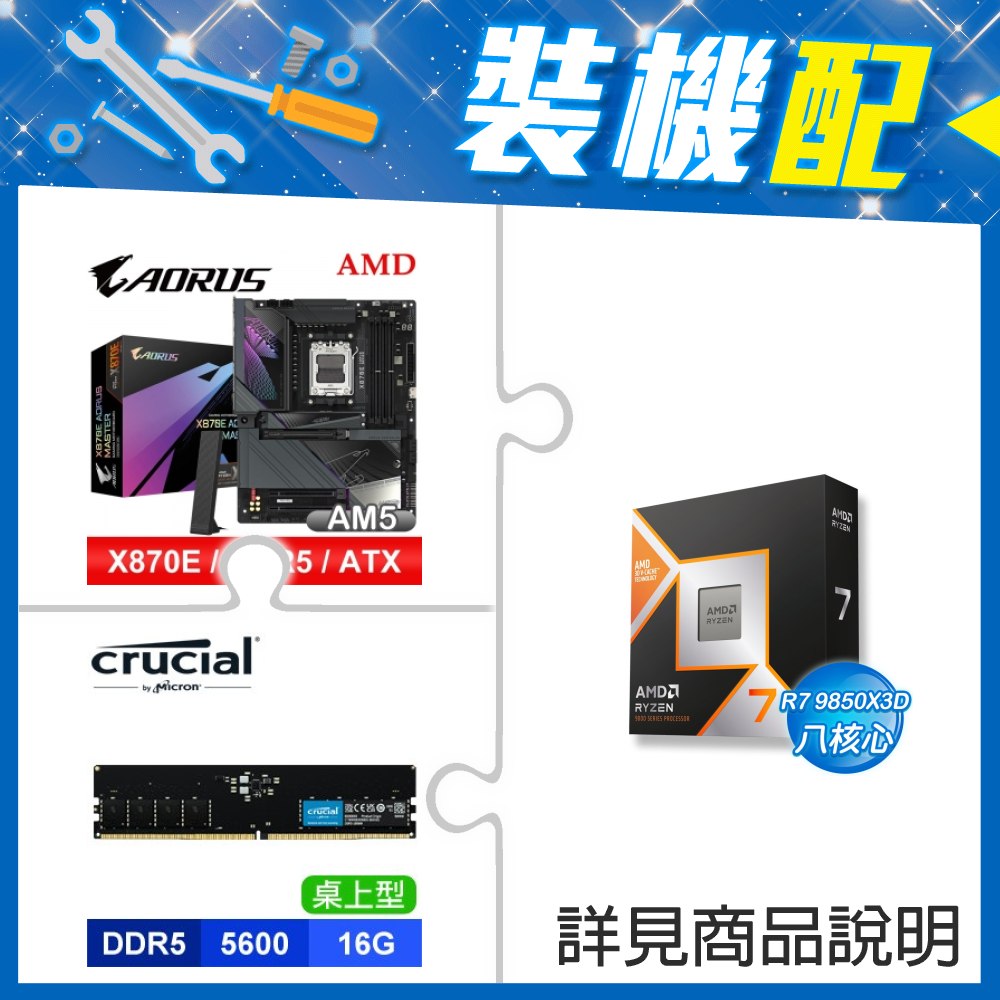 ☆裝機配★ AMD R7 9850X3D+技嘉 X870E AORUS MASTER ATX主機板+美光 Crucial PRO DDR5-6000 16G 記憶體