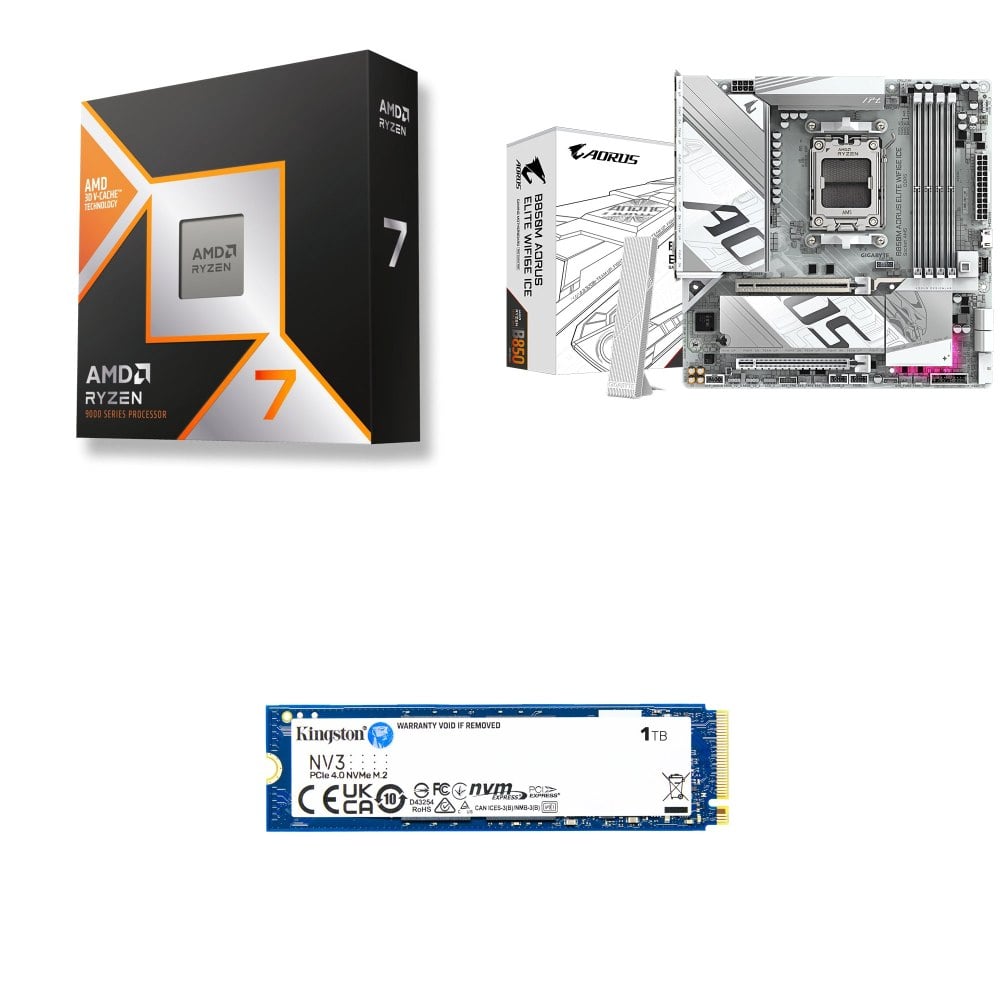 ☆裝機配★ AMD R7 9850X3D+技嘉 B850M AORUS ELITE WIFI6E ICE M-ATX主機板+金士頓 NV3 1TB M.2 PCIe SSD