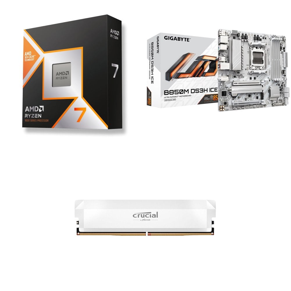 ☆裝機配★ AMD R7 9850X3D+技嘉 B850M DS3H ICE M-ATX主機板+美光 Crucial PRO DDR5-6000 16G 記憶體《白》