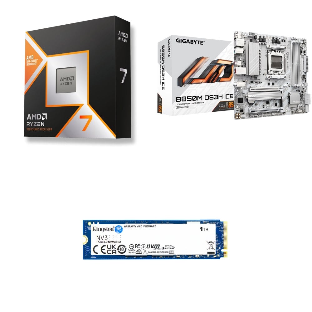 ☆裝機配★ AMD R7 9850X3D+技嘉 B850M DS3H ICE M-ATX主機板+金士頓 NV3 1TB M.2 PCIe SSD