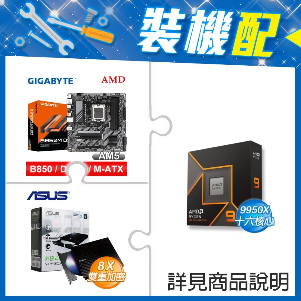 ☆裝機配★ AMD R9 9950X+技嘉 B850M DS3H MATX主機板+華碩 SDRW-08D2S-U 外接式燒錄機《黑》