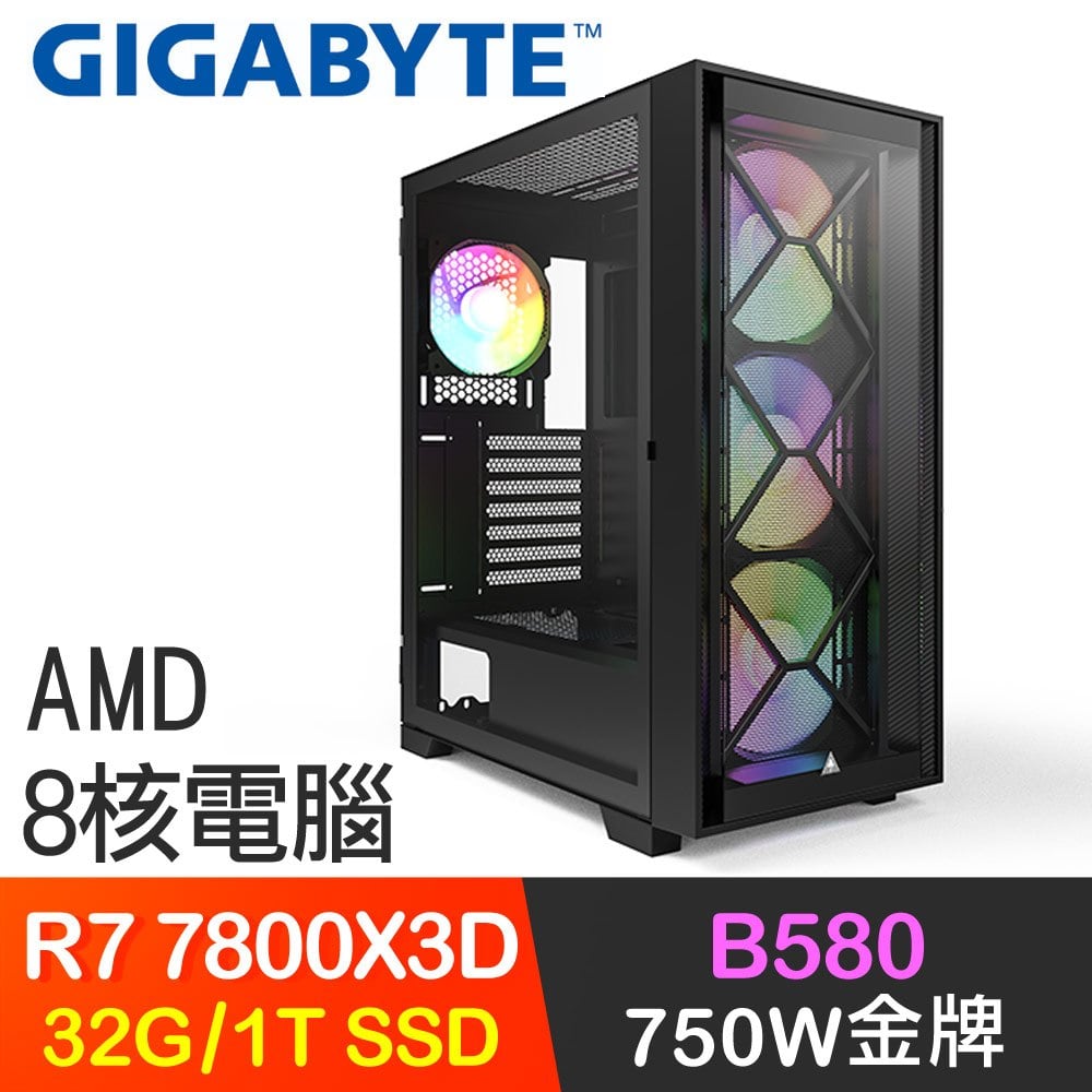 技嘉系列【星閃瞬殺】R7 7800X3D 8核 B580 電腦主機(16G/1TB SSD)