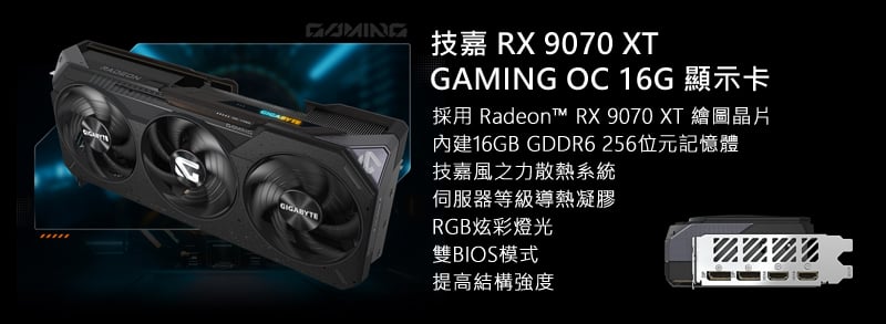 - 顯示卡:技嘉 RX 9070 XT GAMING OC 16G