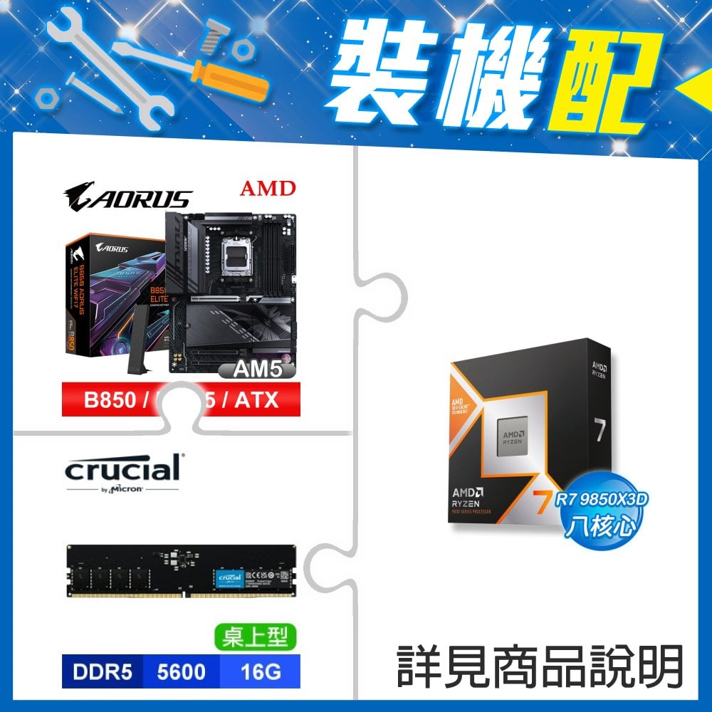 ☆裝機配★ AMD R7 9850X3D+技嘉 B850 AORUS ELITE WIFI7 ATX主機板+美光 DDR5-5600 16G 記憶體