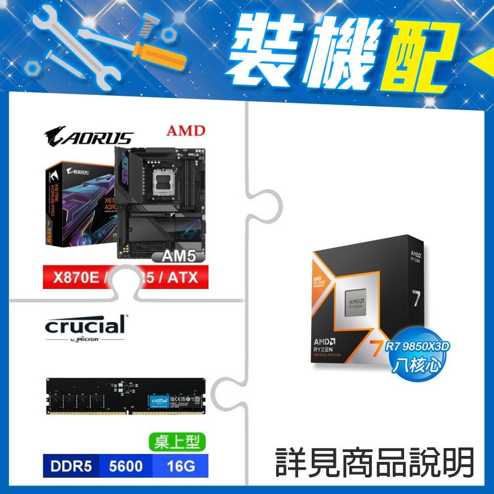 ☆裝機配★ AMD R7 9850X3D+技嘉 X870E AORUS PRO ATX主機板+美光 DDR5-5600 16G 記憶體