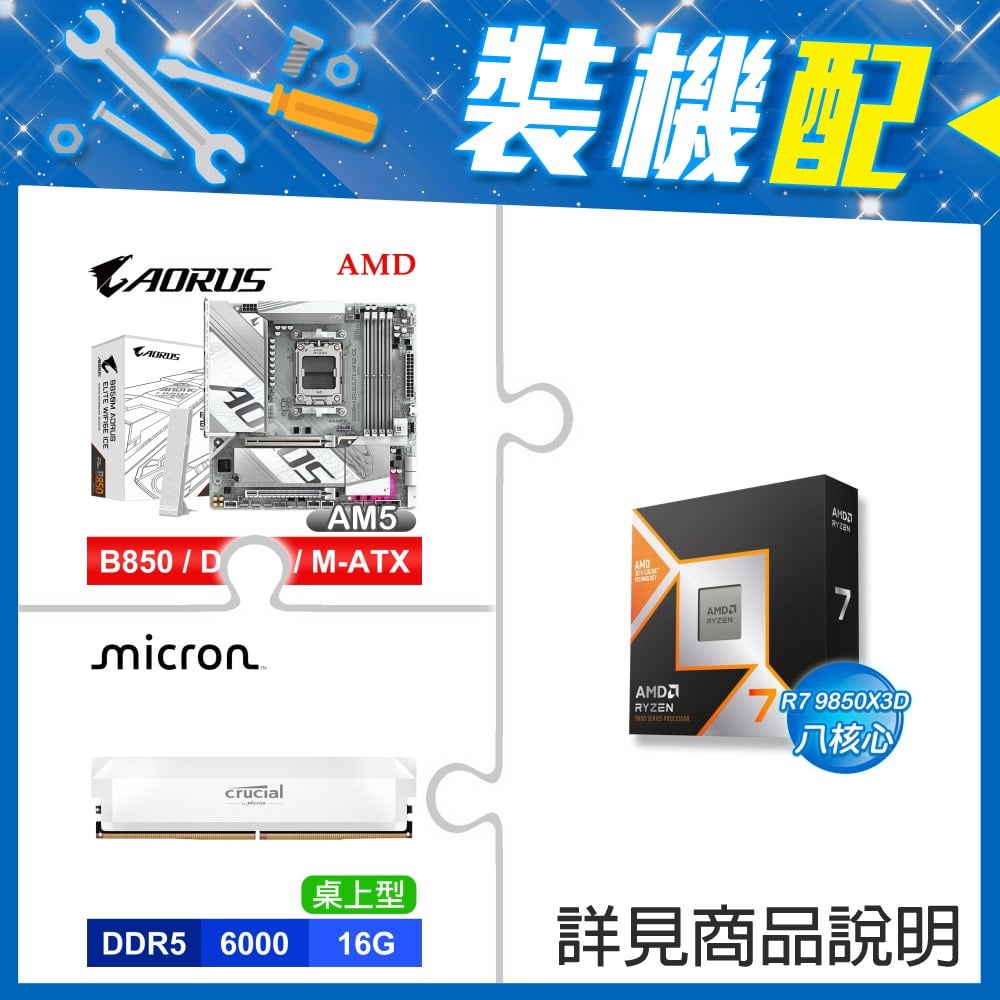 ☆裝機配★ AMD R7 9850X3D+技嘉 B850 AORUS ELITE WIFI7 ICE ATX主機板+美光 Crucial PRO DDR5-6000 16G 記憶體《白》