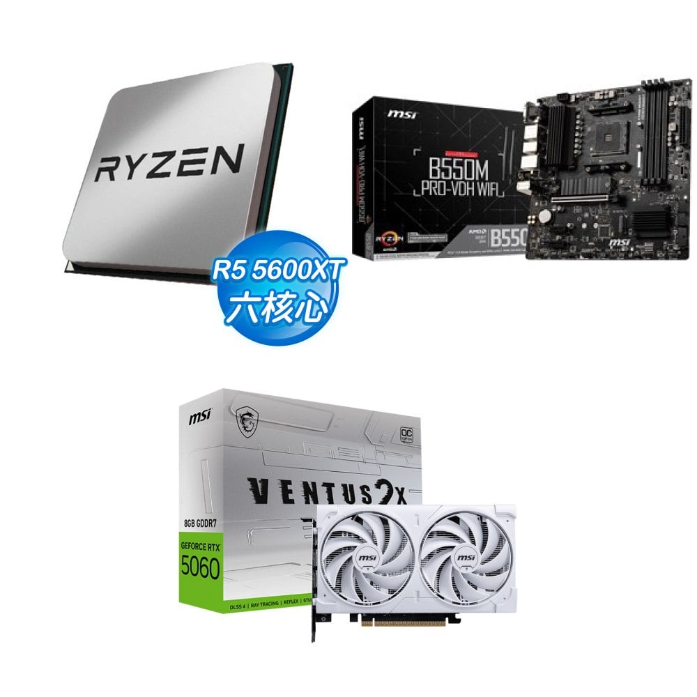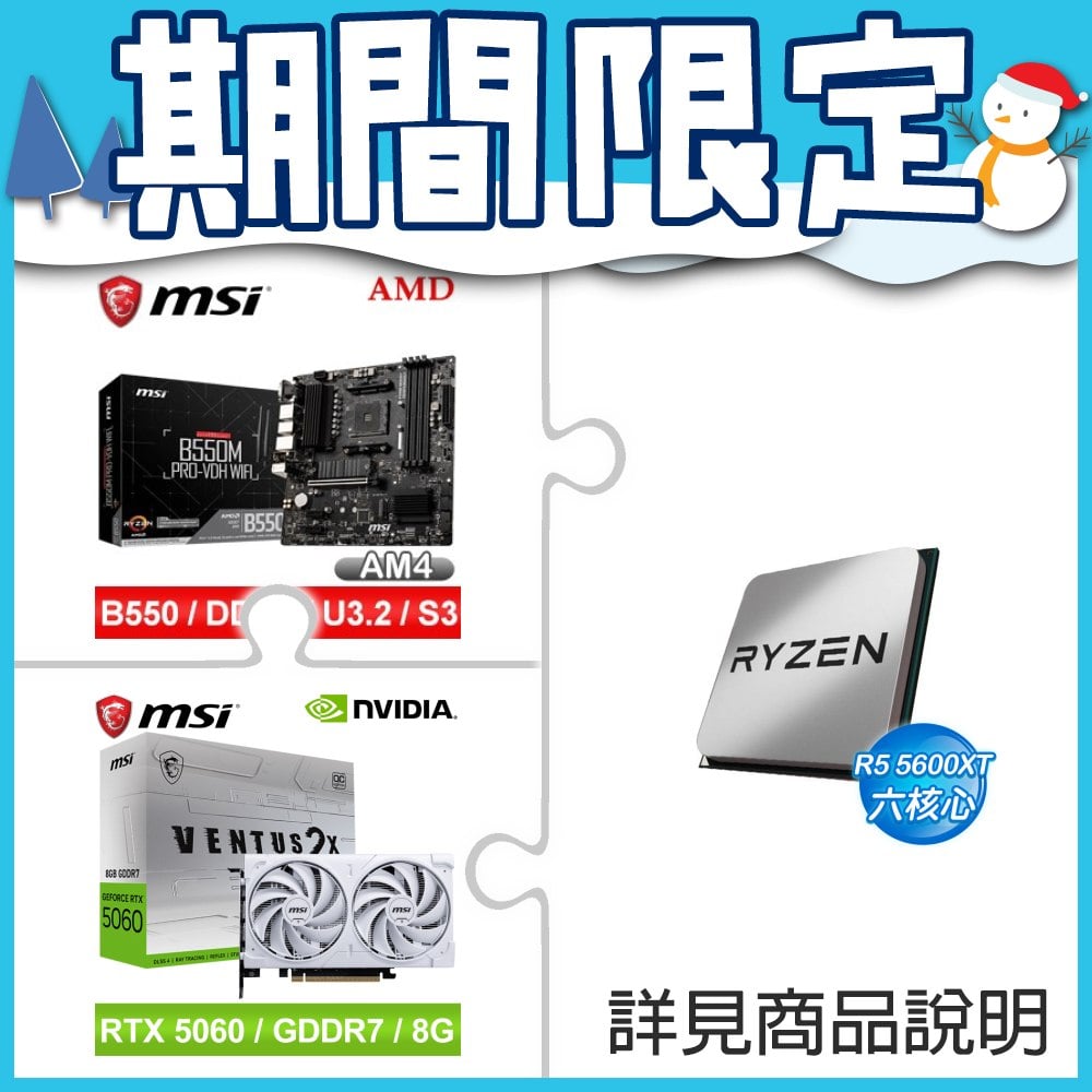 ☆期間限定★ AMD R5 5600XT MPK+微星 B550M PRO-VDH WIFI M-ATX主機板+微星 RTX 5060 8G VENTUS 2X OC WHITE 顯示卡 ★送微星 PRO SHIELD M100P M-ATX機殼《黑》