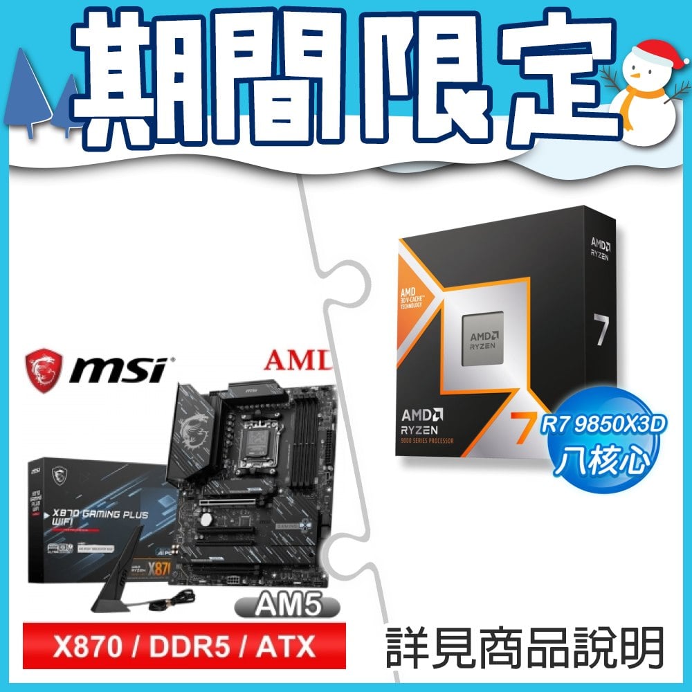 ☆期間限定★ AMD R7 9850X3D+微星 X870 GAMING PLUS WIFI ATX主機板 ★送autobuy X AMD 不鏽鋼泡麵碗(含保溫袋)