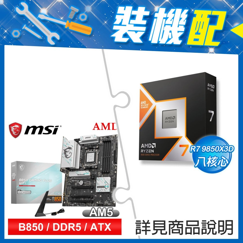 ☆裝機配★ AMD R7 9850X3D+微星 B850 GAMING PLUS WIFI ATX主機板