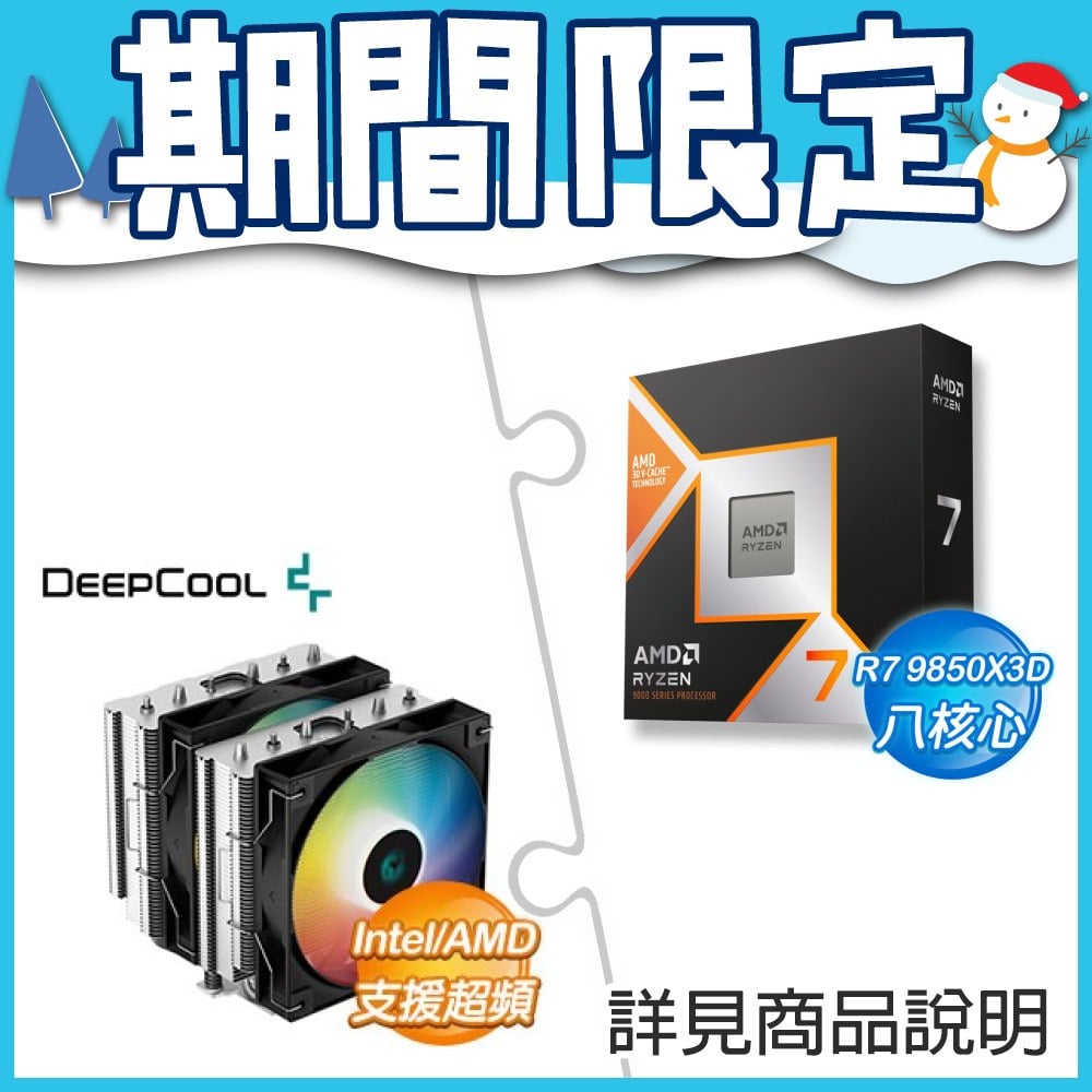 ☆期間限定★ AMD R7 9850X3D+Deepcool AG620 ARGB 6導管 260W 雙塔雙扇
