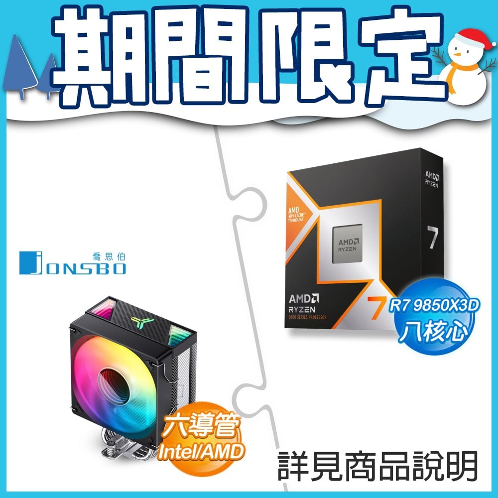 ☆期間限定★ AMD R7 9850X3D+喬思伯 CR1000 V2 Pro ARGB 黑 無限鏡上蓋 6導管 230W 單塔單風扇 散熱器