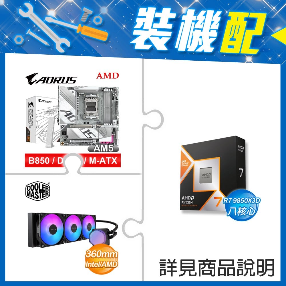 ☆裝機配★ AMD R7 9850X3D+技嘉 B850 AORUS ELITE WIFI7 ATX主機板+酷碼 EliteLiquid 360 ARGB 水冷散熱器