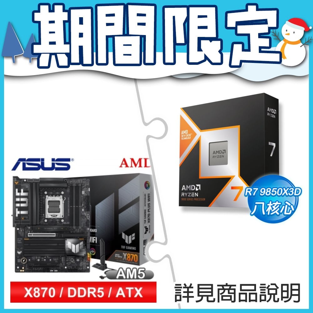 ☆期間限定★ AMD R7 9850X3D+華碩 TUF GAMING X870-PLUS WIFI ATX主機板 ★送autobuy X AMD 不鏽鋼泡麵碗(含保溫袋)