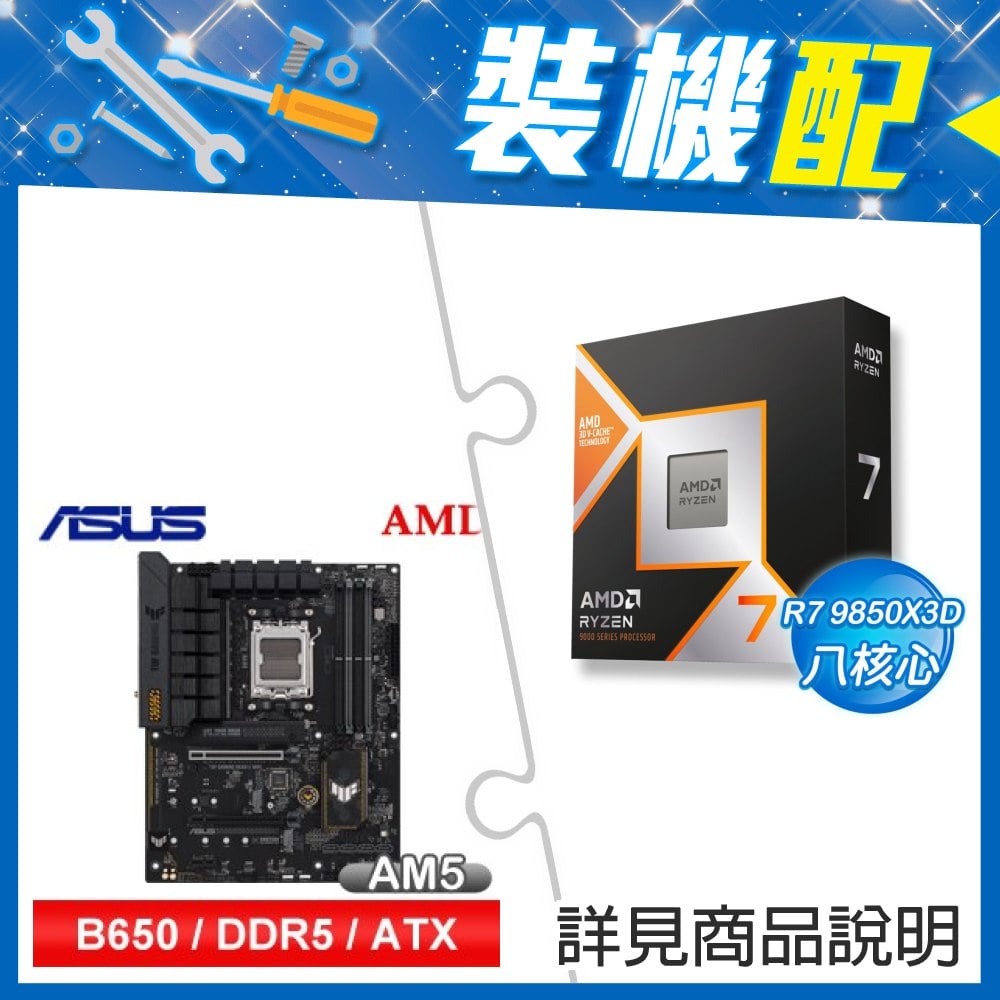 ☆裝機配★ AMD R7 9850X3D+華碩 TUF GAMING B850-PLUS WIFI ATX主機板