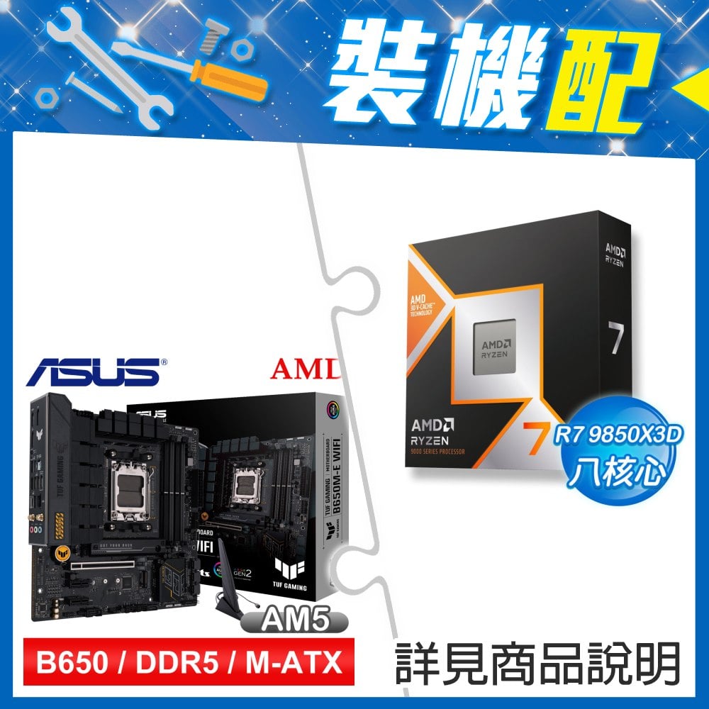 ☆裝機配★ AMD R7 9850X3D+華碩 TUF GAMING B650M-PLUS WIFI M-ATX主機板