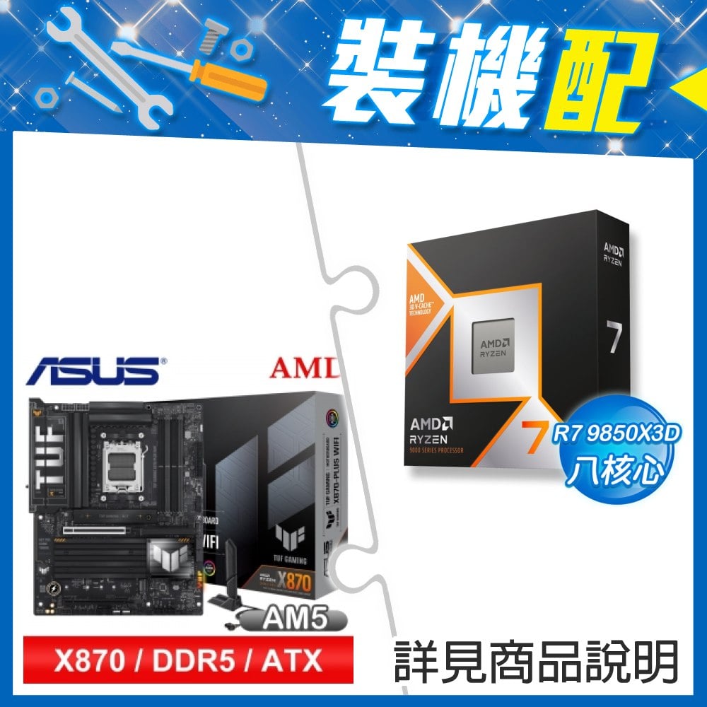 ☆裝機配★ AMD R7 9850X3D+華碩 TUF GAMING X870-PLUS WIFI ATX主機板