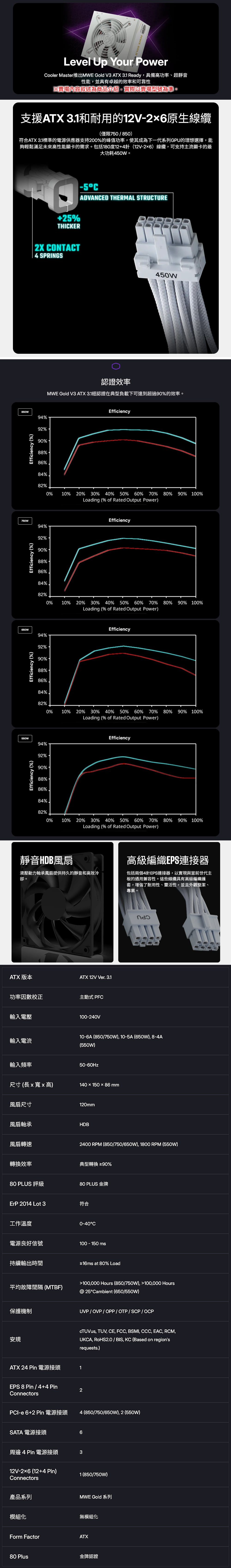 Cooler Master 酷碼 MWE Gold 750 V3 金牌 直出 ATX3.1 電源供應器《白》(5年保)