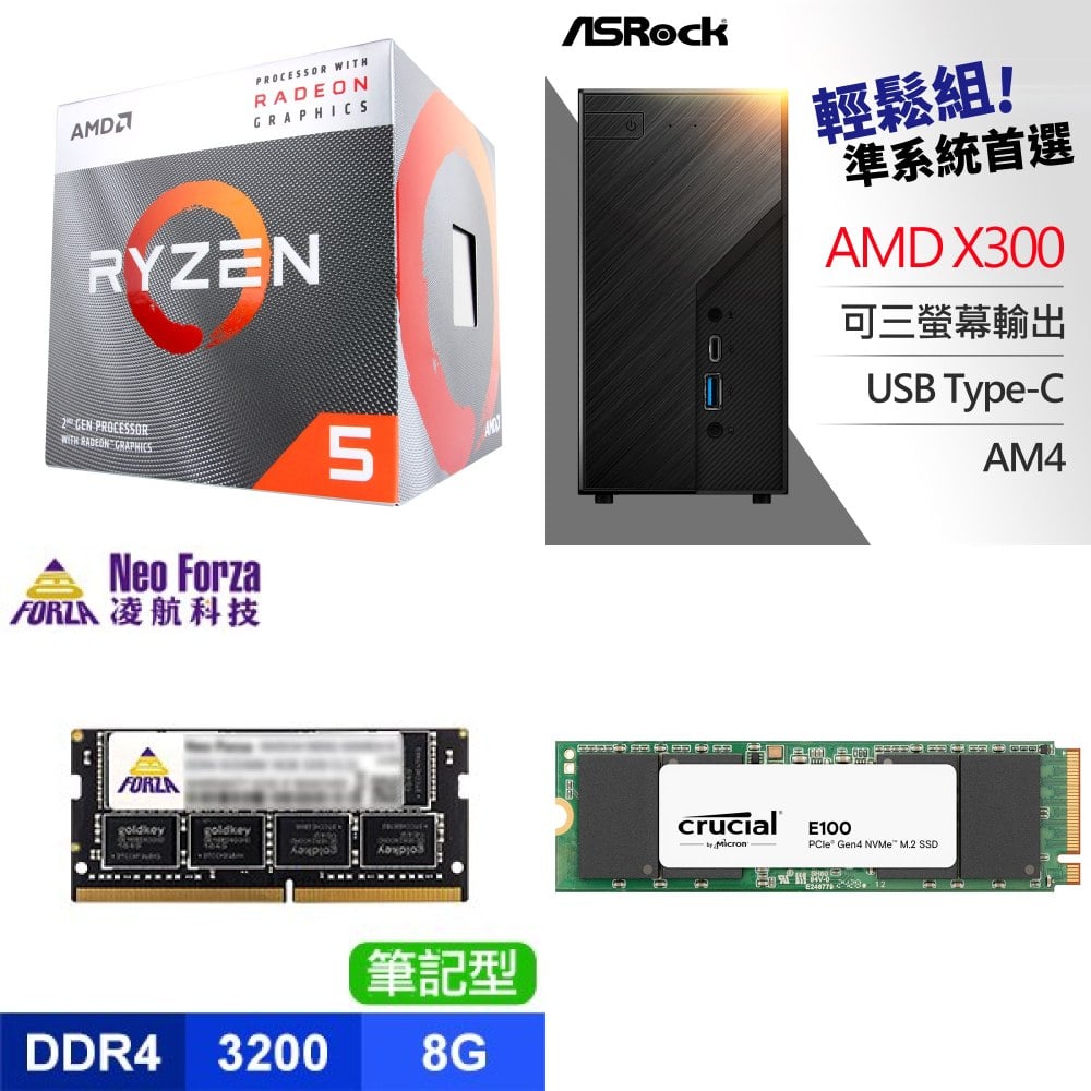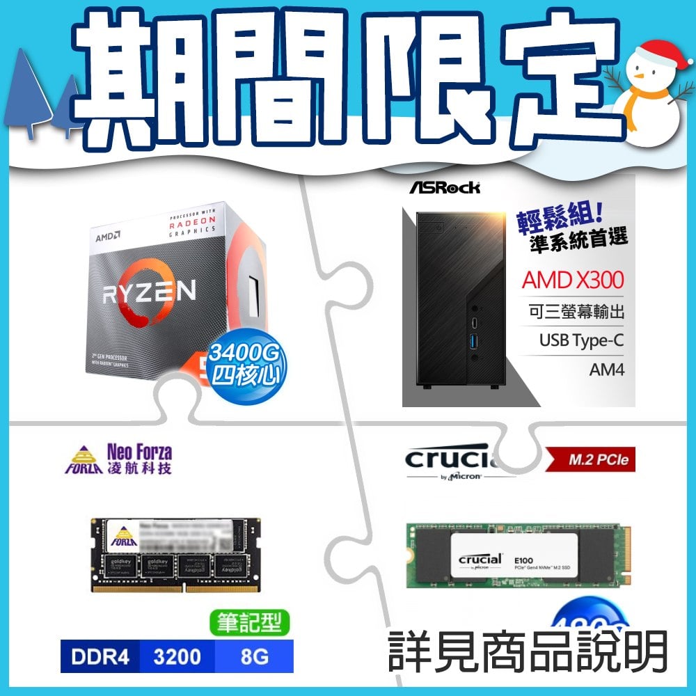 ☆期間限定★ AMD Ryzen 5 3400G SR1+華擎 Deskmini X300 2.5G Mini-STX準系統+凌航 NB DDR4-3200 8G 記憶體+美光 Crucial E100 480GB M.2 PCIe SSD ★送華擎 DeskMini WIFI+BT4.2 無線模組+華擎 DeskMini VESA 後背安裝支架