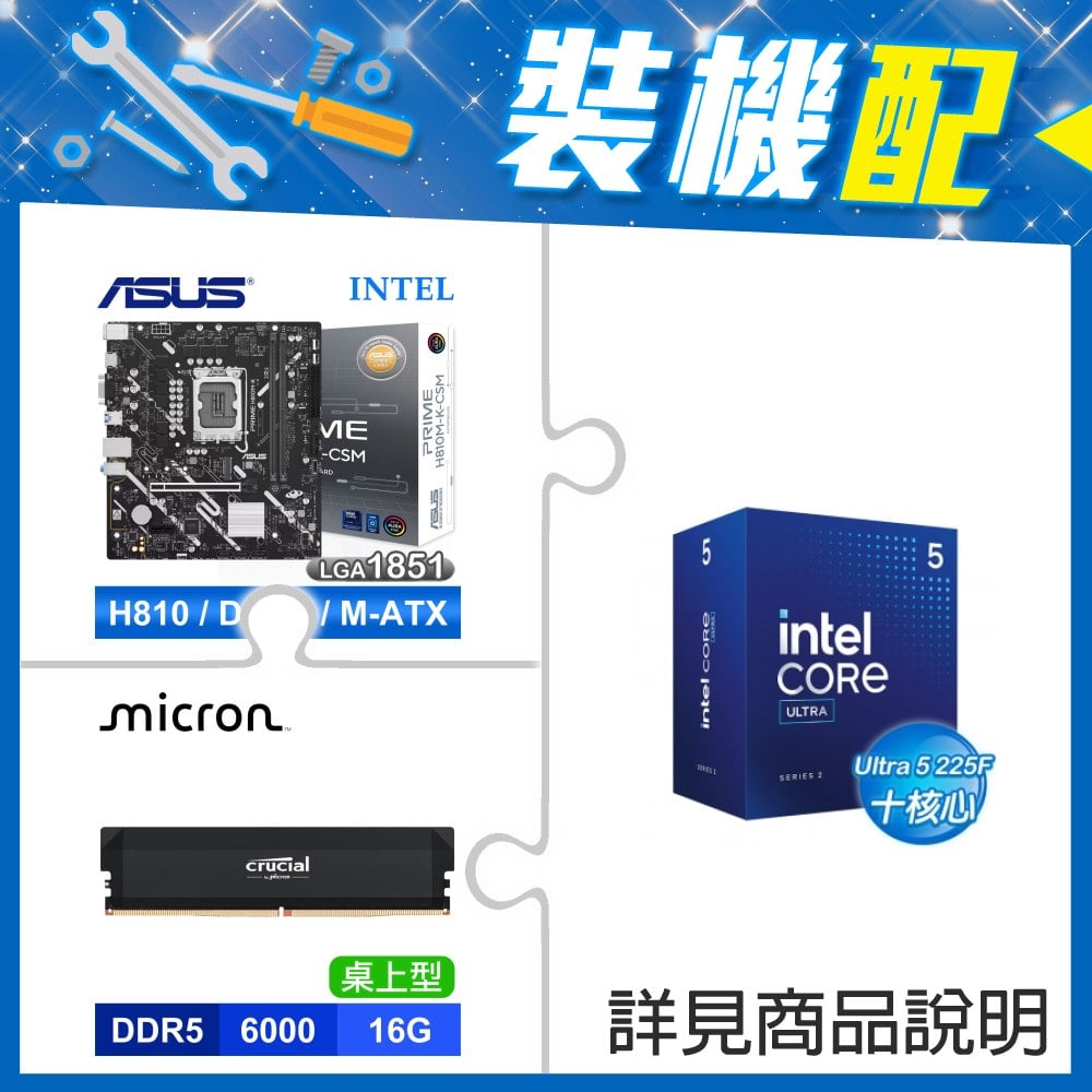 ☆裝機配★ Core U5 225F+華碩 PRIME H810M-K-CSM D5 MATX主機板+美光 Crucial PRO DDR5-6000 16G 記憶體