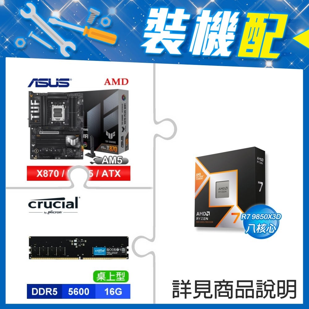 ☆裝機配★ AMD R7 9850X3D+華碩 TUF GAMING X870-PLUS WIFI ATX主機板+美光 DDR5-5600 16G 記憶體