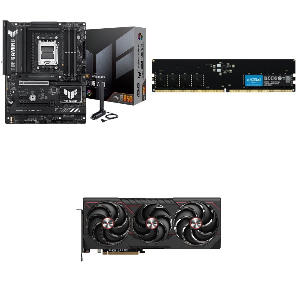 ☆期間限定★ 華碩 TUF GAMING B850-PLUS WIFI ATX主機板+美光 Crucial DDR5-5600 16G 記憶體(X2)+藍寶石 PULSE 脈動 RX 9070 XT GAMING 16GB 顯示卡