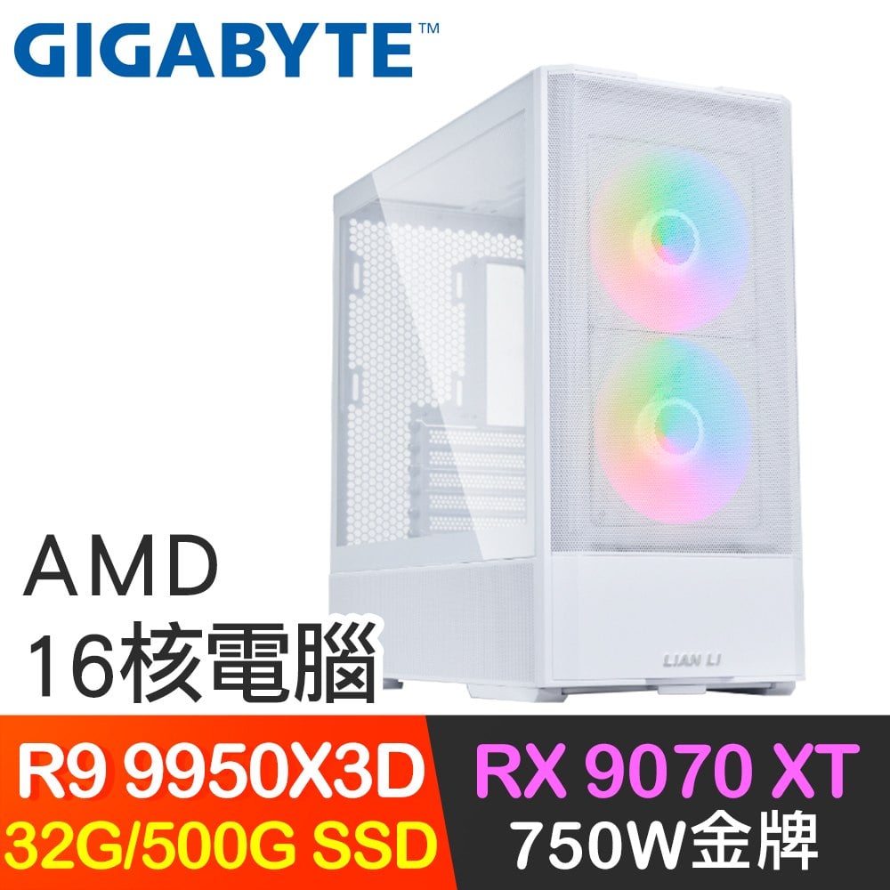 技嘉系列【霜刃旋舞】R9 9950X3D 16核 RX9070XT 電腦主機(32G/1TB SSD)