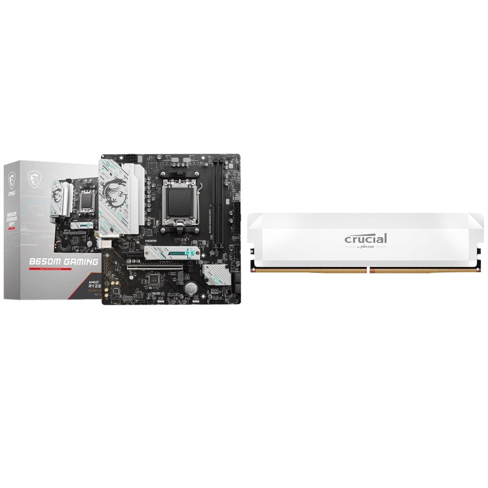 ☆期間限定★ 微星 B650M GAMING WIFI M-ATX主機板+美光 Crucial PRO DDR5 6000 16G CL36 白 記憶體