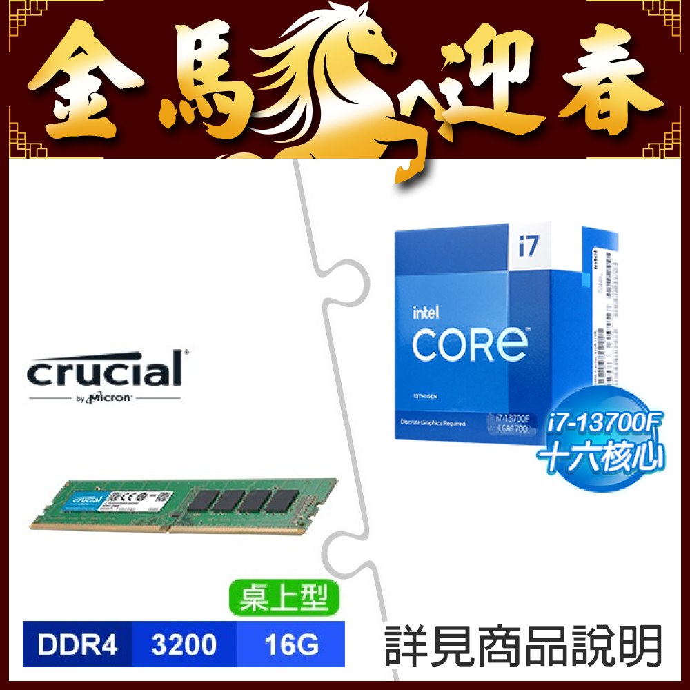☆期間限定★ i7-13700F《無內顯》+美光 Crucial DDR4-3200 16G 記憶體