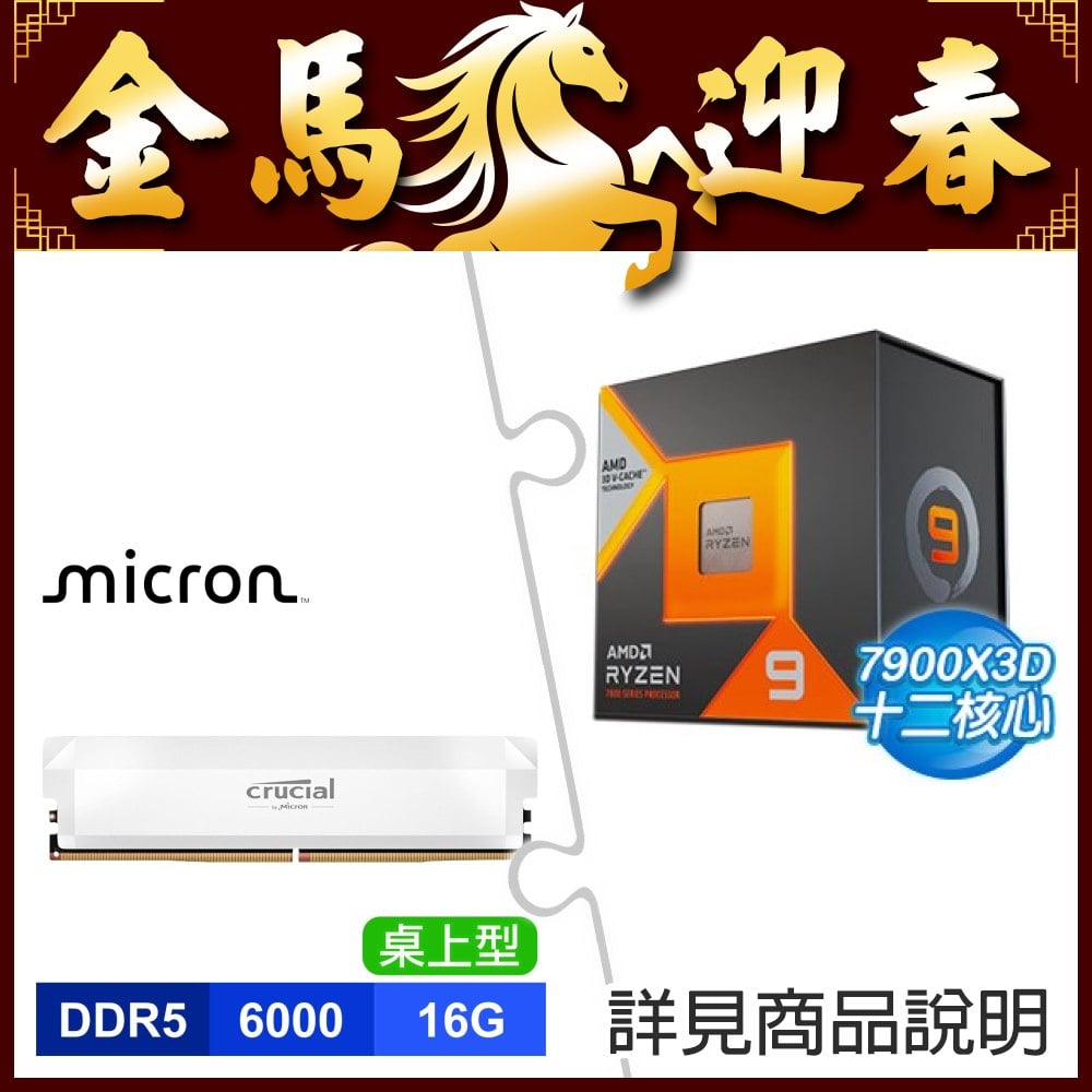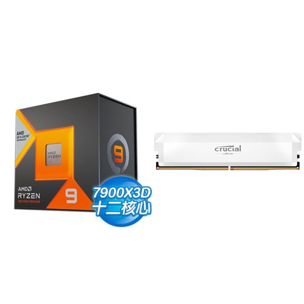 ☆期間限定★ AMD R9 7900X3D+美光 Crucial PRO DDR5 6000 16G CL36 白 記憶體(X2)