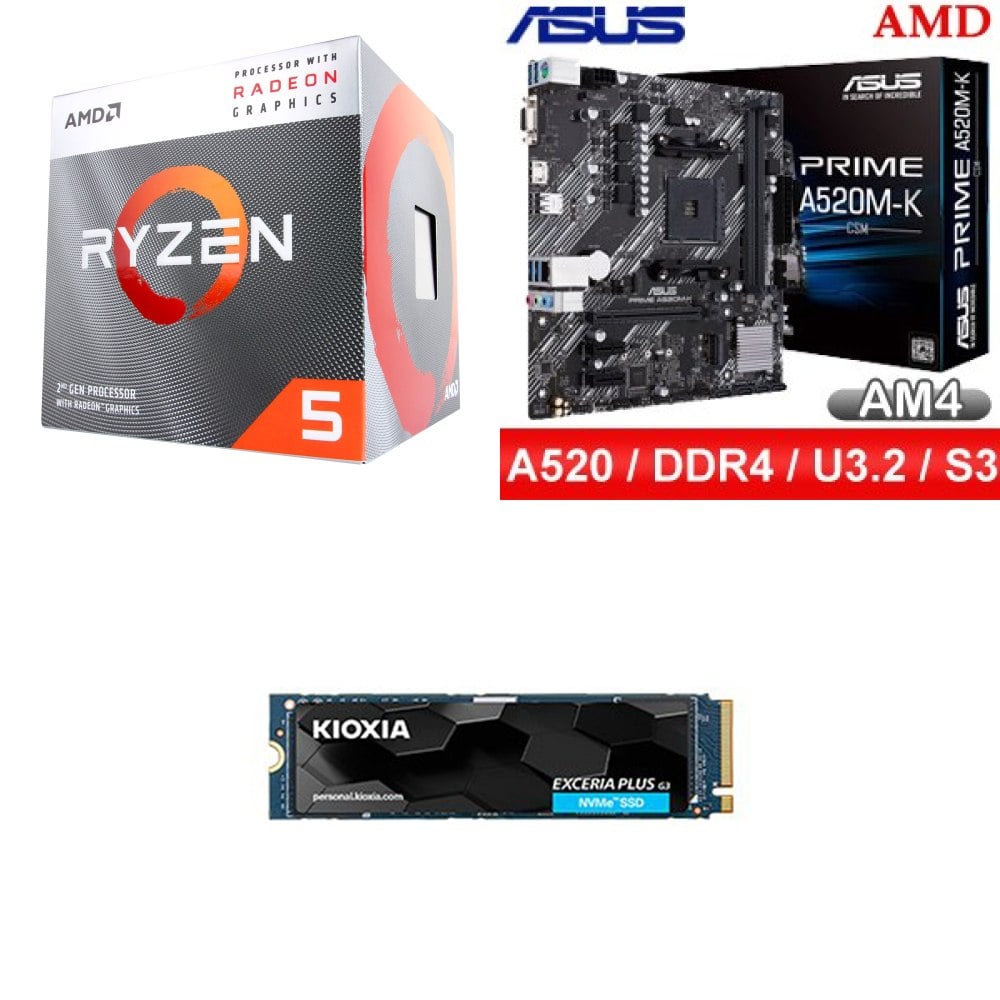 ☆裝機配★ AMD R5 3400G+華碩 PRIME A520M-K CSM M-ATX 主機板+鎧俠 EXCERIA PLUS G3 2TB PCIe Gen4x4 SSD