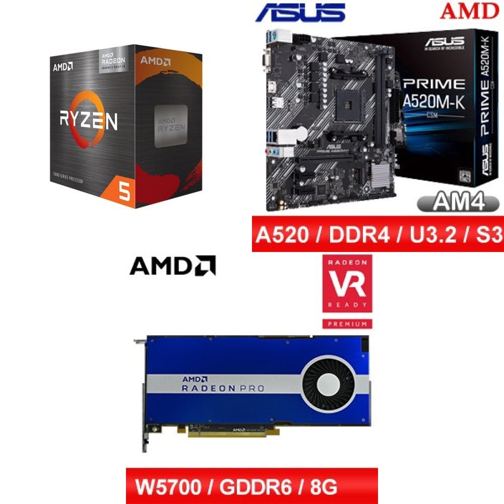 ☆裝機配★ AMD R5 5500GT+華碩 PRIME A520M-K CSM M-ATX 主機板+AMD RadeonPro W5700 8G 256bit專業繪圖卡