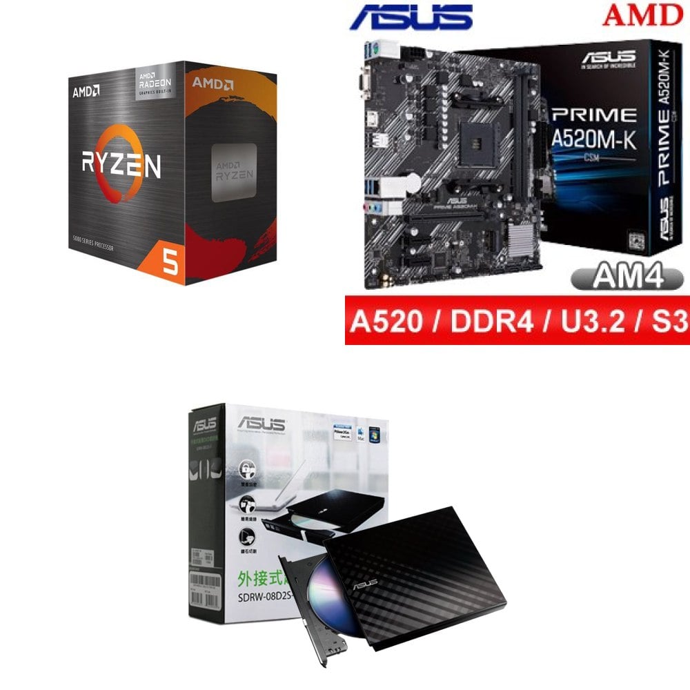 ☆裝機配★ AMD R5 5500GT+華碩 PRIME A520M-K CSM M-ATX 主機板+華碩 SDRW-08D2S-U 外接式燒錄機《黑》