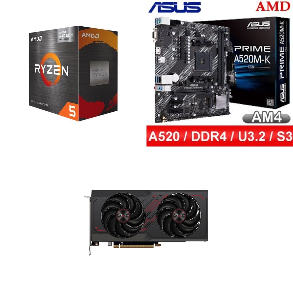 ☆裝機配★ AMD R5 5600GT+華碩 PRIME A520M-K CSM M-ATX 主機板+藍寶石 PULSE 白金版 RX 7650 GRE GAMING 8GB 顯示卡