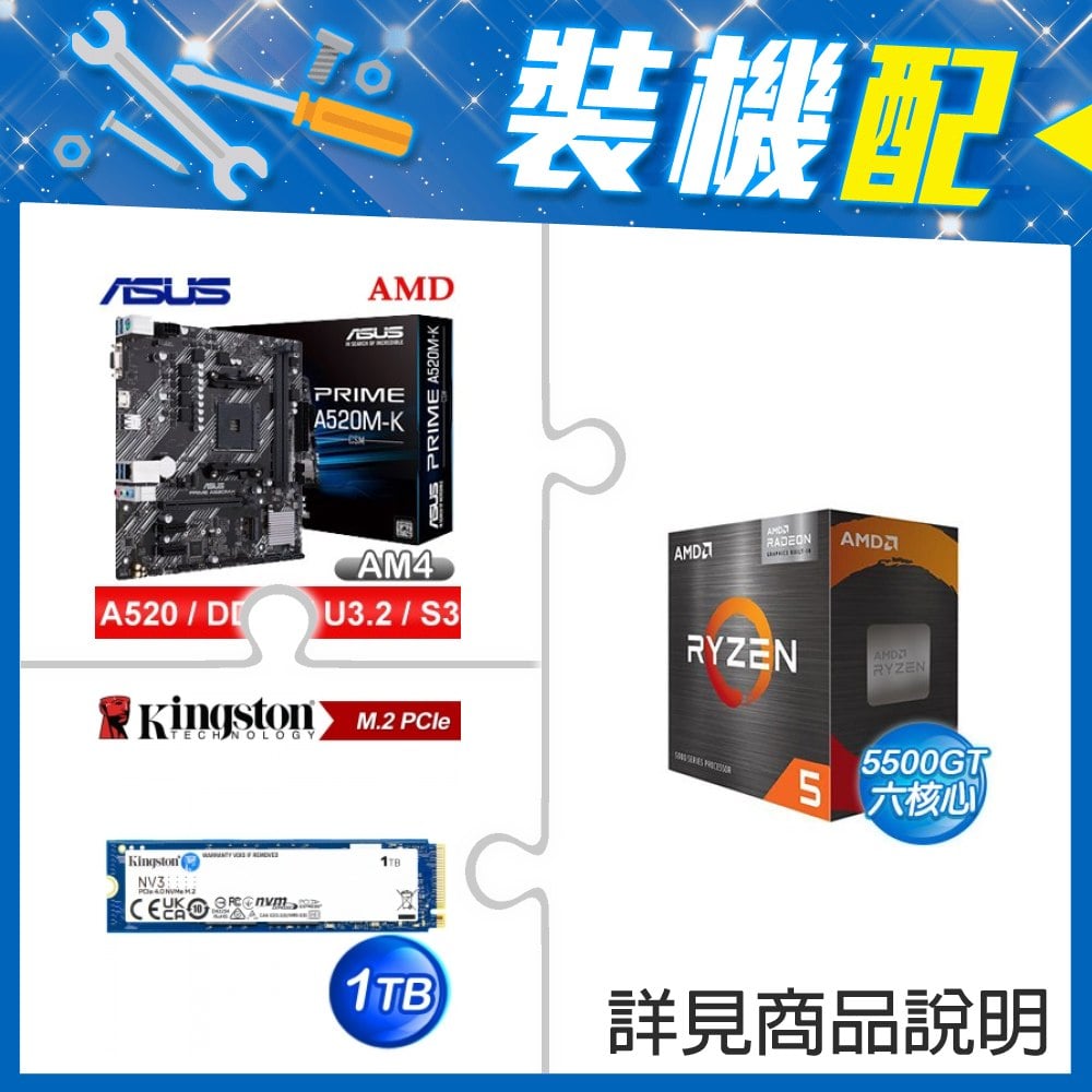 ☆裝機配★ AMD R5 5500GT+華碩 PRIME A520M-K CSM M-ATX 主機板+金士頓 NV3 1TB M.2 PCIe SSD