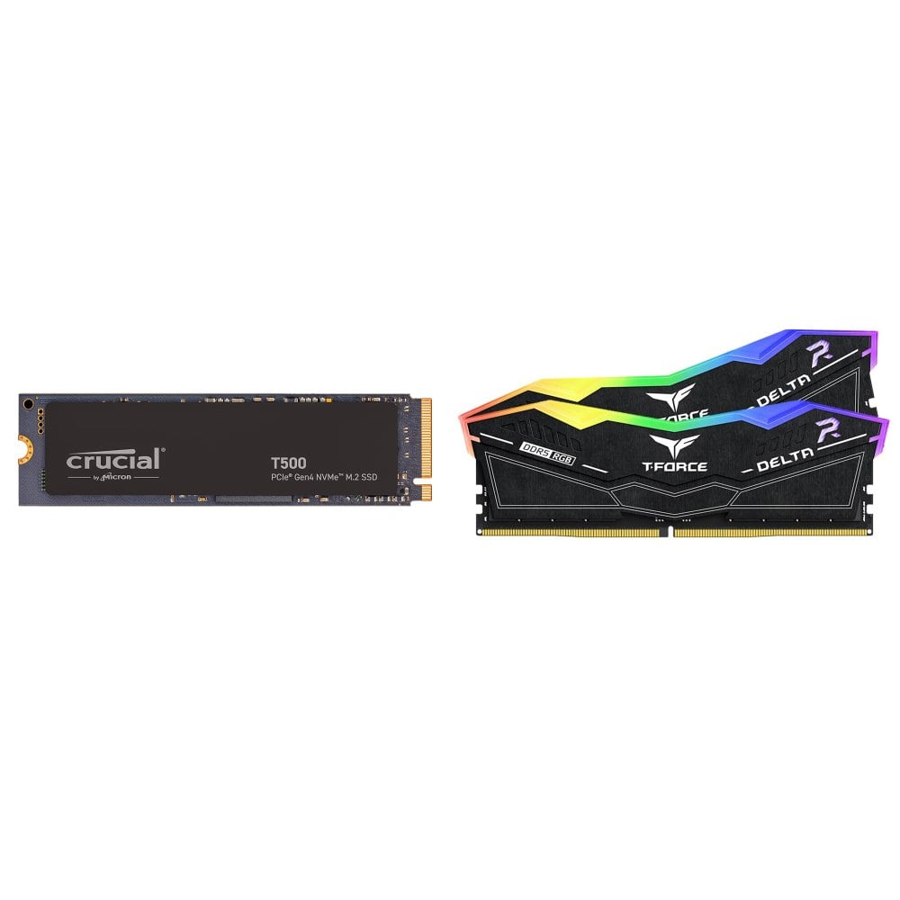 ☆期間限定★ 美光 Crucial T500 1TB M.2 PCIe 4.0 SSD+TEAM十銓T-Force DELTA RGB 6000 16G*2 黑 記憶體