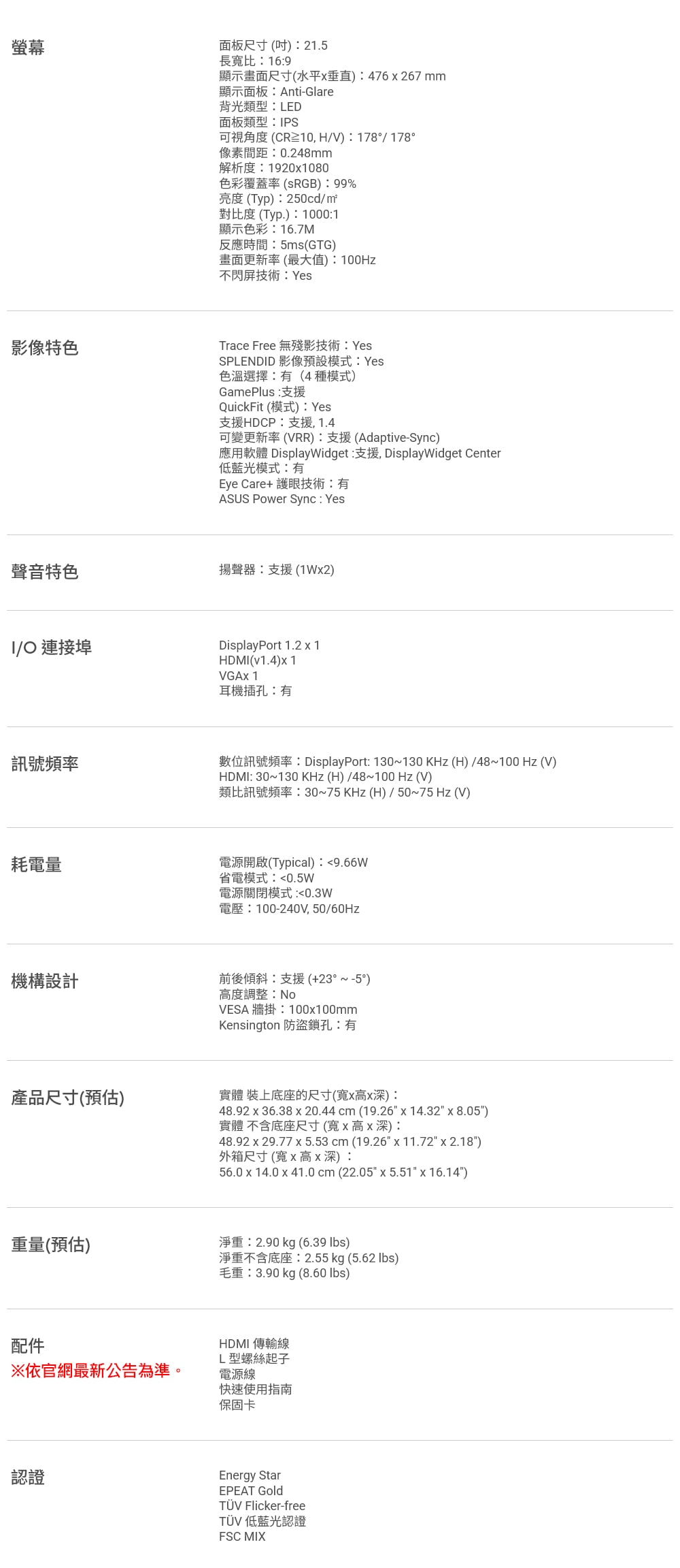 ASUS 華碩 VP229QF 22型 5ms 100Hz IPS螢幕《黑》(DP/HDMI/VGA)