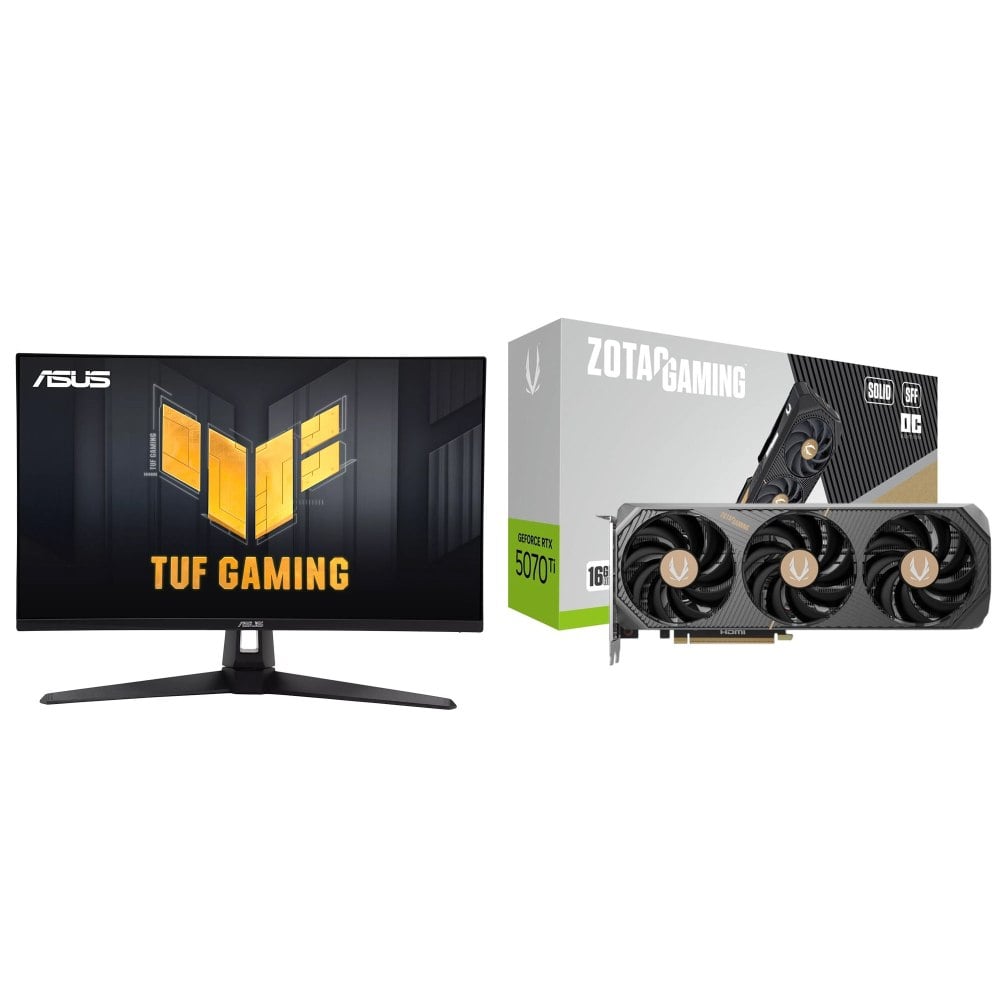 ☆期間限定★ 華碩 VG27AQ5A 27型 2K 210Hz IPS電競螢幕+索泰 RTX 5070 TI SOLID SFF OC 16G 顯示卡