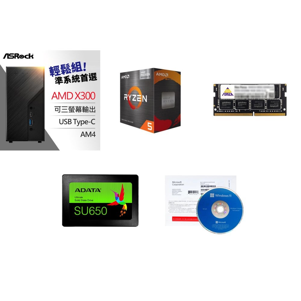 ☆期間限定★ 華擎 Deskmini X300 2.5G Mini-STX準系統+AMD R5 5500GT+凌航 NB DDR4-3200 8G 記憶體+威剛 SU650 240G SSD+Windows 11 64bit 隨機版《含DVD》 ★送華擎 DeskMini WIFI+BT4.2 無線模組+華擎 DeskMini VESA 後背安裝支架+PC-cillin 2025 雲端版 一年一台 隨機版