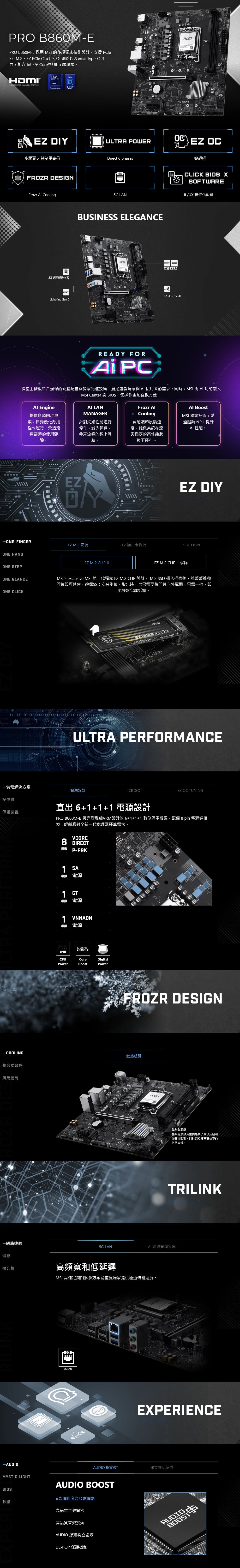 - 超性能 : 6項直出供電並採用 P-PAK電源系統,8 pin CPU 電源連接埠、Core Boost、Memory Boost,採用 6層伺服器等級PCB