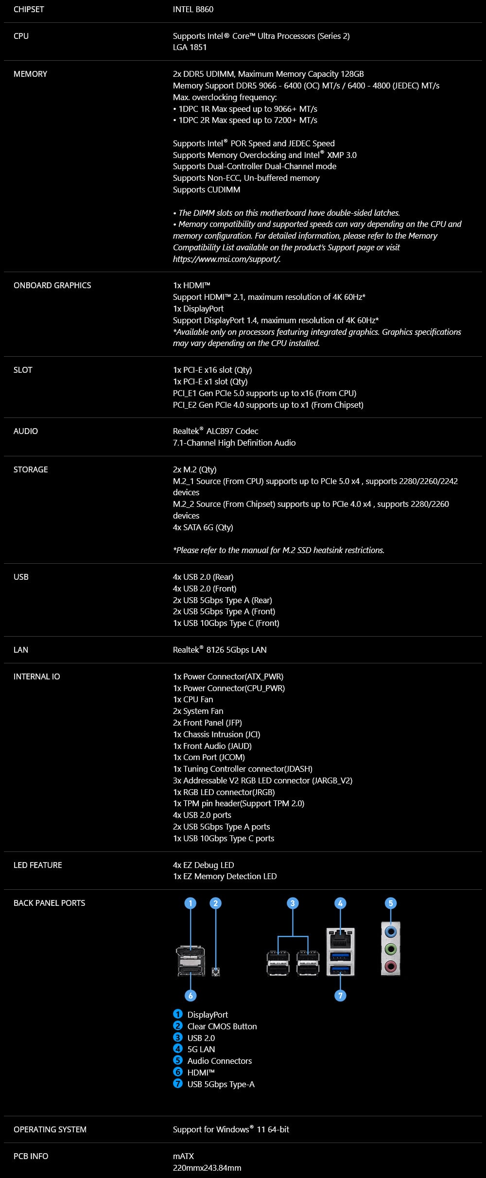 ☆裝機配★ Core U5 235+微星 PRO B860M-B MATX主機板